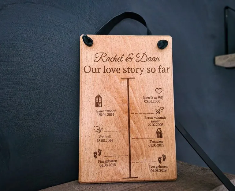 Met liefde, inspiratie en een flinke dosis doorzettingsvermogen begonnen we dit familiebedrijf. Letterlijk: onze mannen bouwen de website en maken alle houten planken in eigen werkplaats. Zo kunnen we unieke, hoogwaardige producten aanbieden met een persoonlijke touch. Van tekst, logo tot foto – je stelt alles eenvoudig zelf samen.