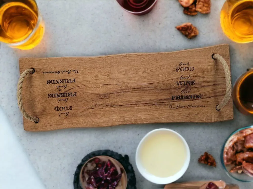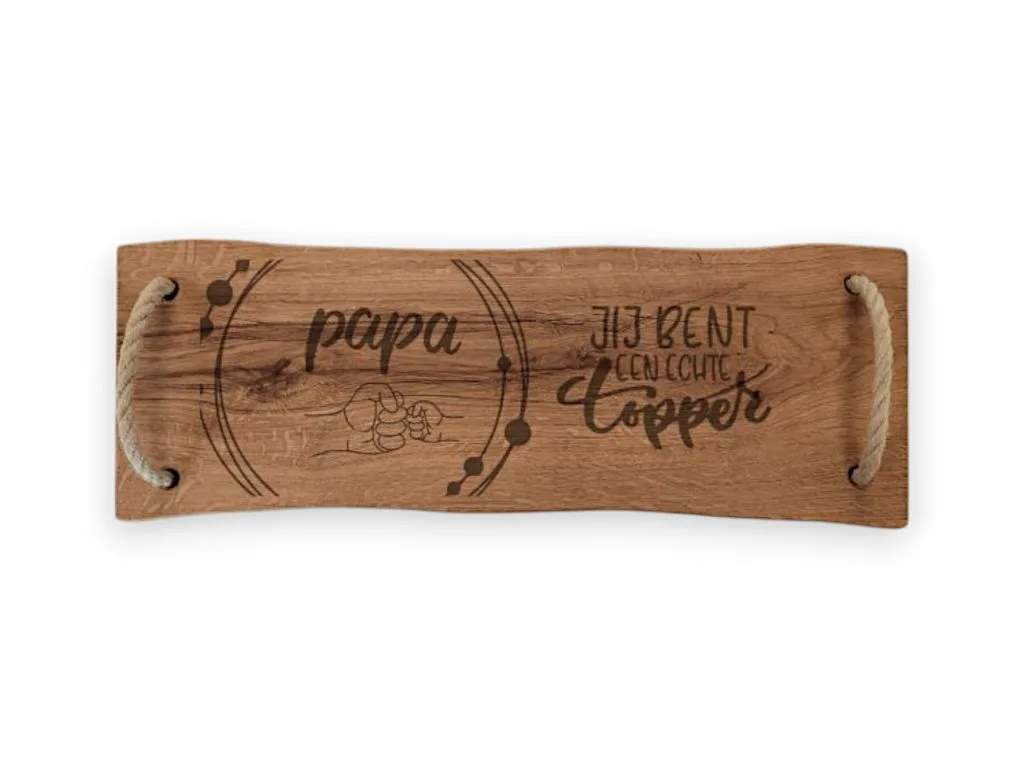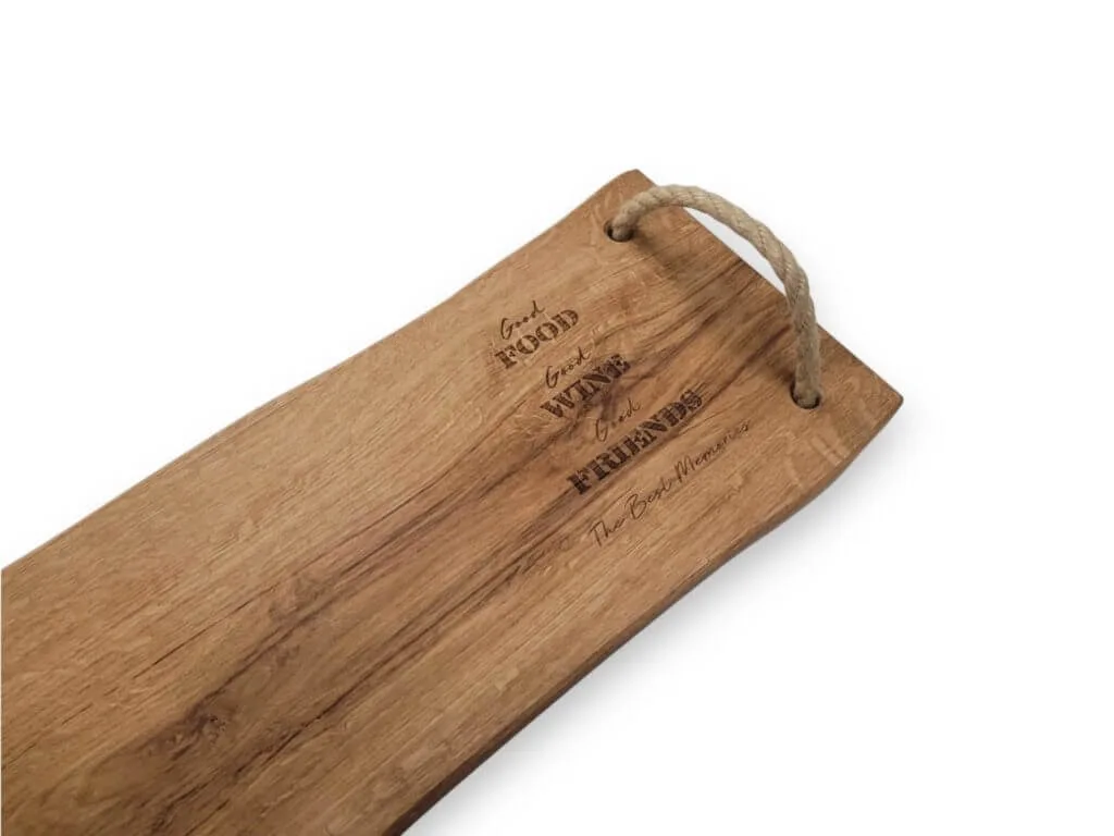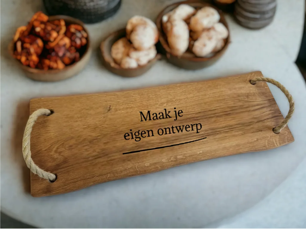 New in our Webshop is this oak handmade robust tapas board, with handles made of rope, entirely to your own design!