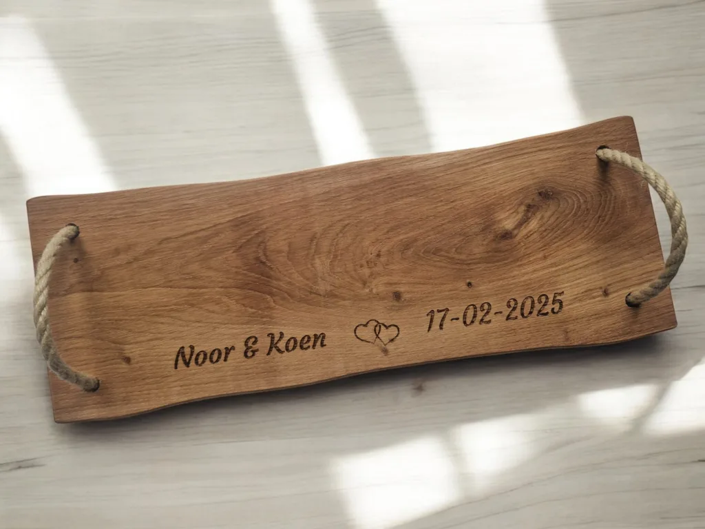 Are you looking for an original gift for a housewarming, wedding or for a colleague, for example, this is a very nice gift. Incredibly fun to give as a gift, or perhaps it will look incredibly beautiful in your own kitchen. This board is approximately 50x19cm, so plenty of room for delicious snacks!