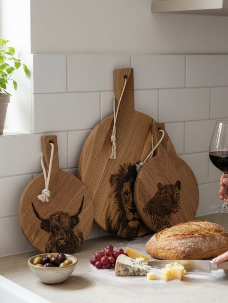 Wij graveren jouw foto of ontwerp met precisie op onze borrelplanken van beuken- en eikenhout, zorgvuldig geselecteerd in onze eigen werkplaats. Dankzij de rustige houtstructuur komen foto’s haarscherp en levensecht tot hun recht.