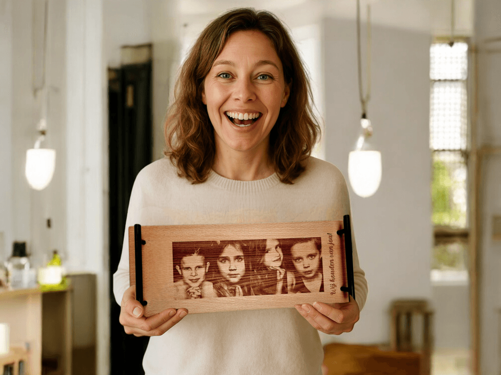 Haarscherp eigen foto laten graveren in Zorgvuldig Geselecteerd Hout