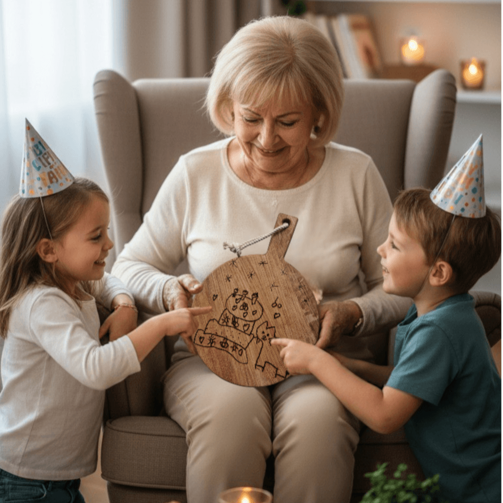 Maak jouw cadeau nóg persoonlijker met handgeschreven namen of kleine tekeningen van kinderen.