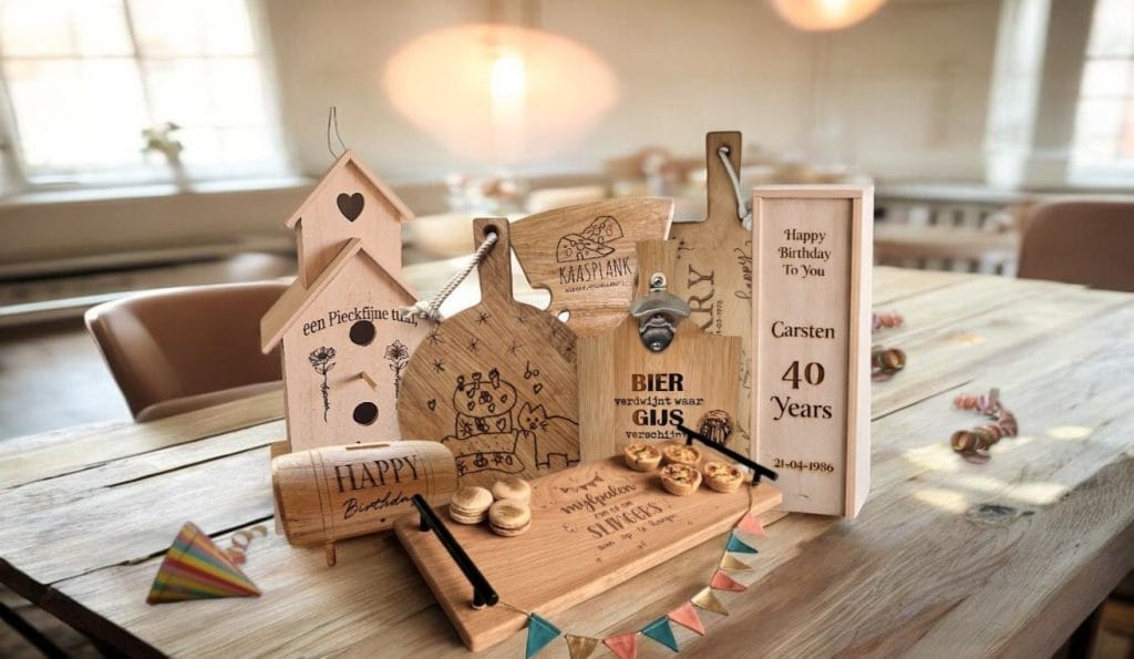 En het blijft niet bij borrelplanken — je kunt jouw foto ook laten graveren op verschillende andere cadeauartikelen.