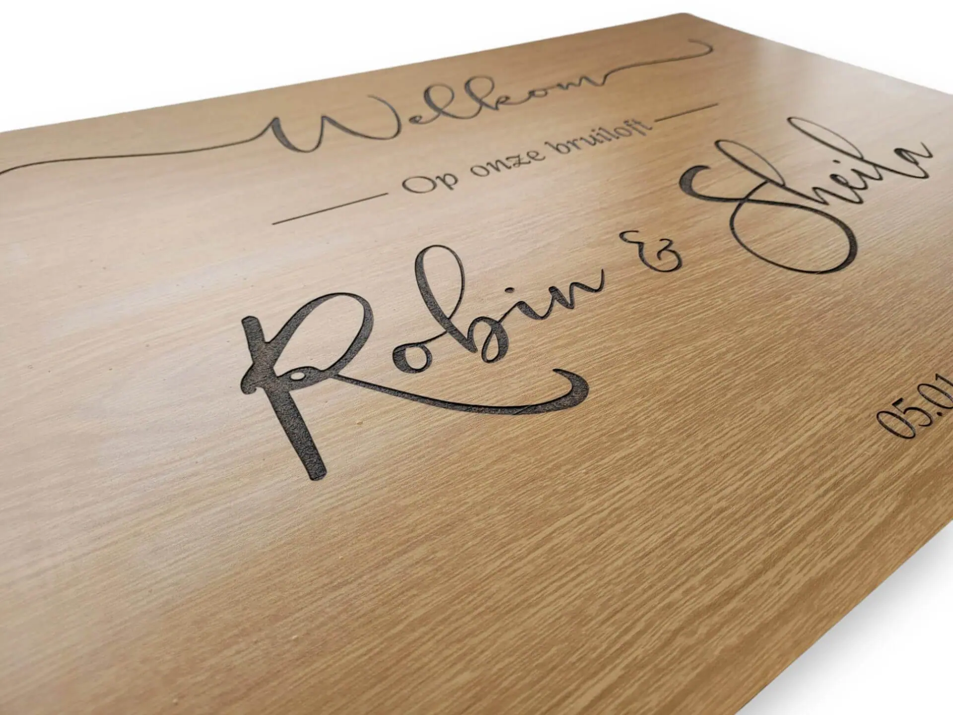 Een gepersonaliseerd welkomstbord voor bijvoorbeeld een bruiloft is een mooie manier om gasten te begroeten en ze welkom te heten op jullie speciale dag. Met een eigen tekst kun je het bord nog persoonlijker maken en een eventuele thema van de bruiloft extra te benadrukken. Of wat denk je van een welkomsbord voor iemand zijn Pensioensfeest, jubileumfeest, een opening van je bedrijf of voor welke gelegenheid dan ook!