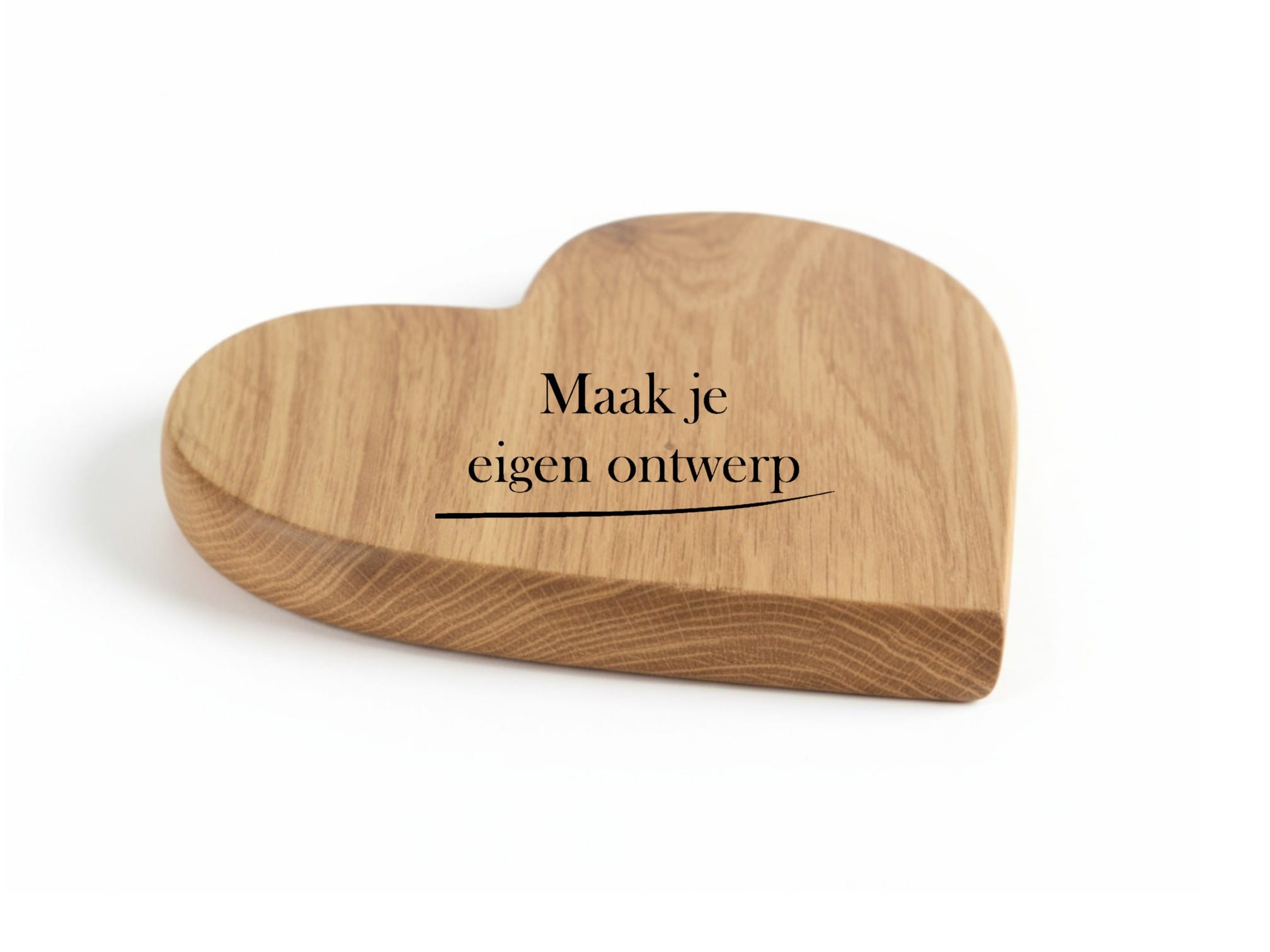 U maakt in onze handige ontwerptool binnen een handomdraai een prachtig ontwerp. Je hebt ook de mogelijkheid om een tekening of logo (tegen meerprijs) te uploaden, om uw ontwerp nog persoonlijker te maken! (Let op: Door het kleurverschil in eikenhout is het minder geschikt voor foto’s, wij geven hier dan ook geen garantie op.)