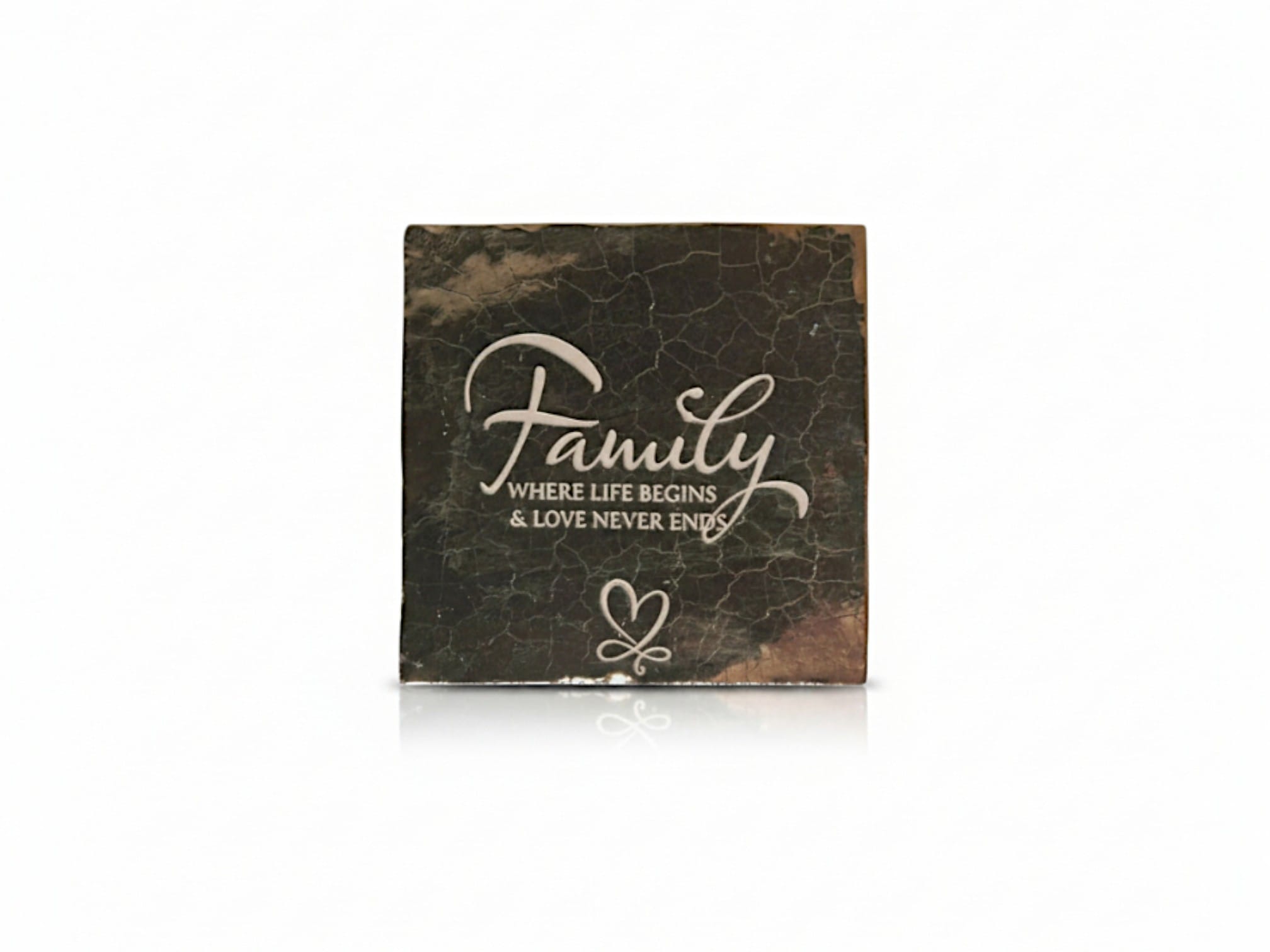 Dit eiken herinneringsplankje is gemaakt om stil te staan bij wat belangrijk is.