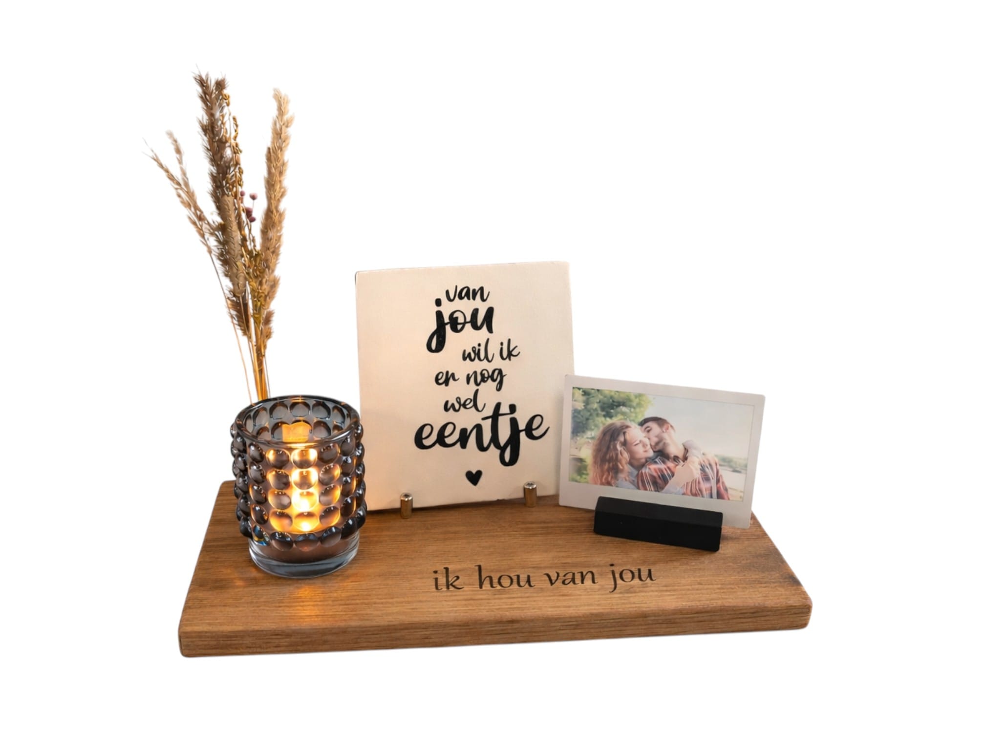 ✔ Optioneel: extra gravure op plankje en fotohouder