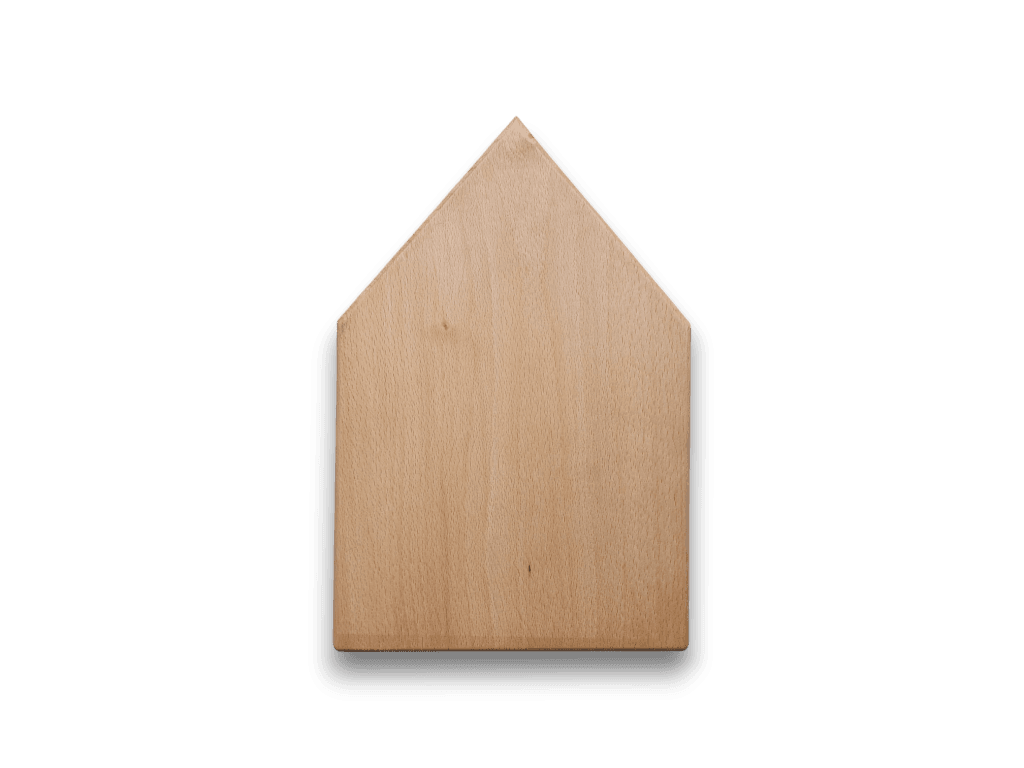 Het huisje van beukenhout is circa 20 x 30 cm en 2 cm dik.