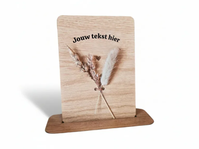 Personaliseer de kaart met je eigen boodschap op de achterkant voor een extra persoonlijk tintje. Benieuwd naar meer? Ontdek ons brede assortiment houten kaartjes voor nog meer originele en leuke opties!