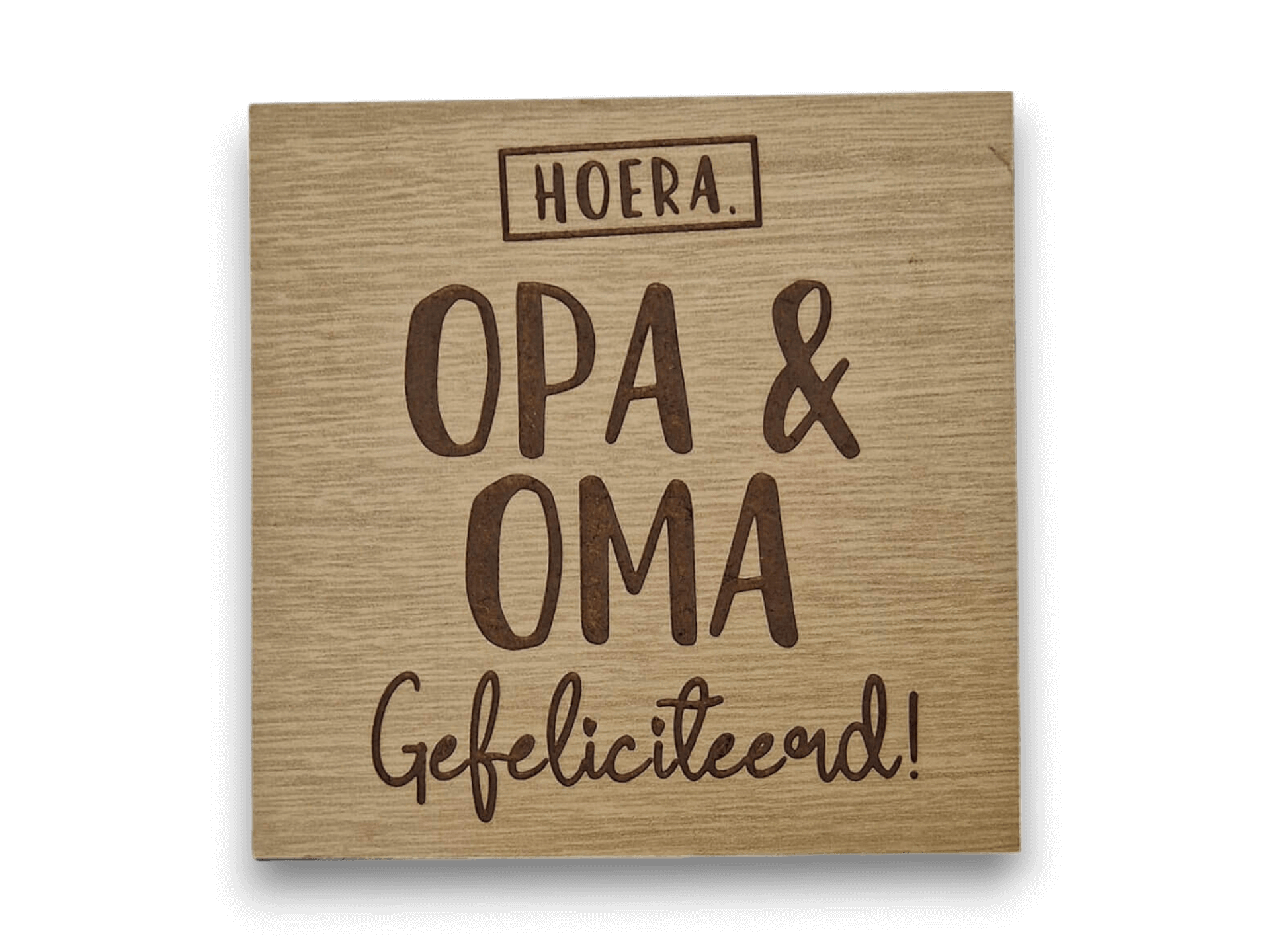 Deze prachtige houten kaart is de perfecte manier om kersverse grootouders te feliciteren met hun ‘nieuwe’ rol. Met de tekst “Hoera, opa en oma! Gefeliciteerd” straalt de kaart vreugde en trots uit, een passend cadeau om dit bijzondere moment te vieren. De kaart is gemaakt van duurzaam hout, waardoor het niet alleen een stijlvol, maar ook een blijvend aandenken is.