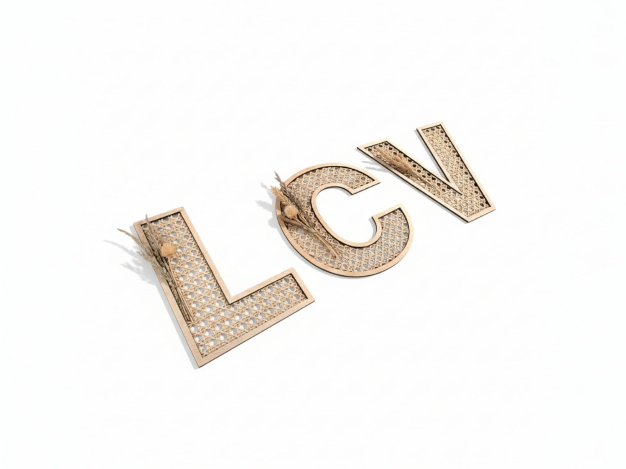 Zeer eigentijds en een echte eyecather op bijvoorbeeld de babykamer, deze Rotan Letters! Gemaakt van meranti hout wat een luxe warme uitstraling heeft. Bijgeleverd circa 3 a 4 droogbloemen die je vast kan zetten met bijv. een touwtje op de letter naar wens. De letters zijn licht van gewicht en daardoor eventueel ook met dubbelzijdige tape op te hangen.