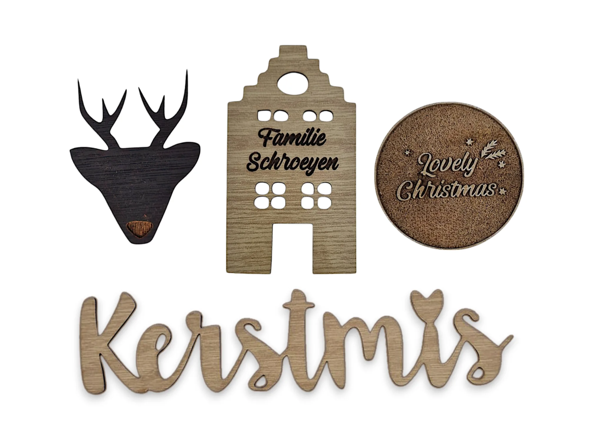 U kunt de houder voorzien van tekst, keuze uit diverse varianten. Daarnaast kunt u het houten huisje voorzien van uw eigen tekst.