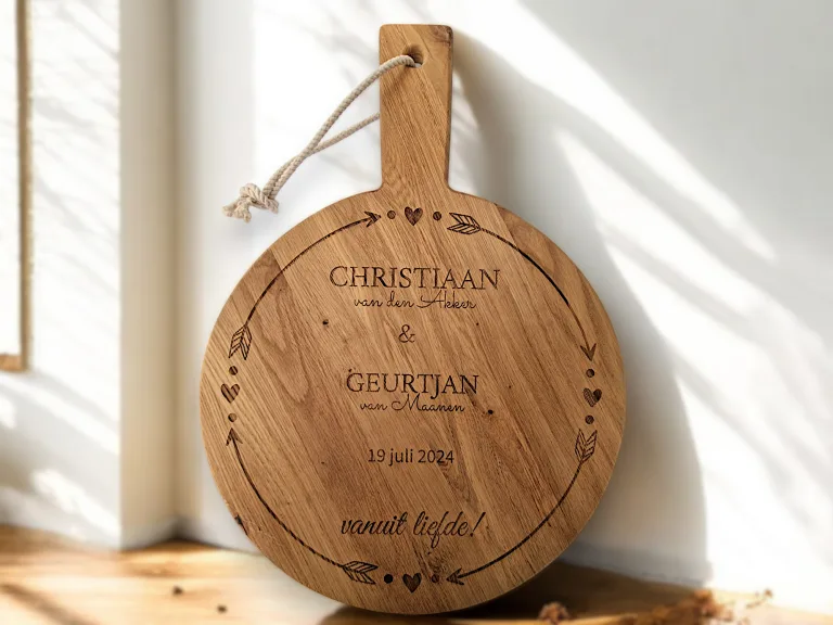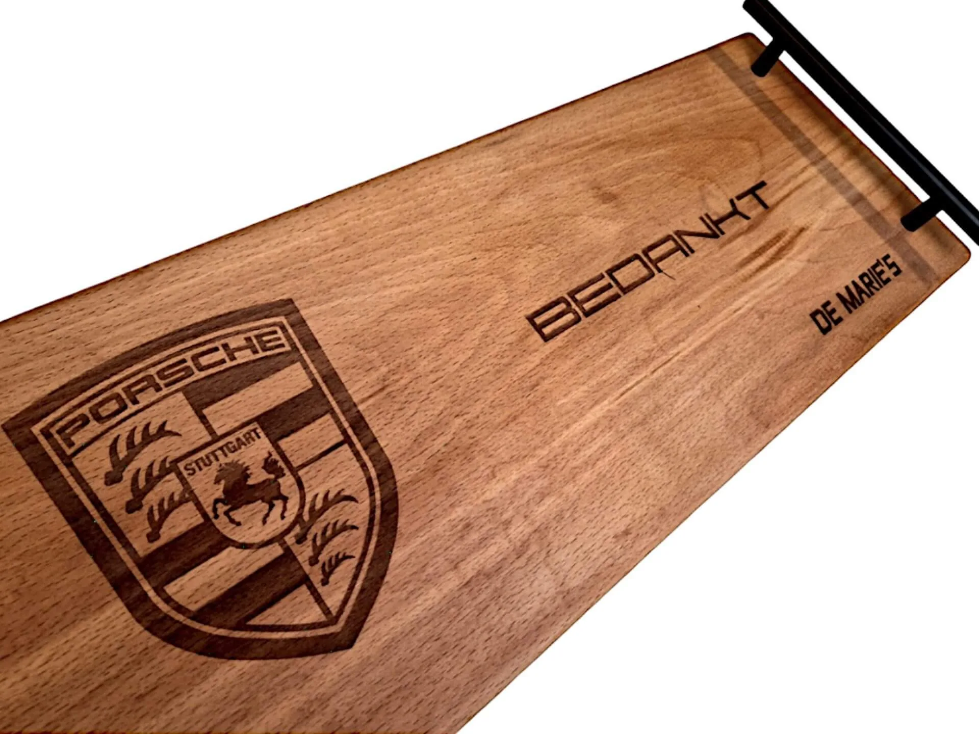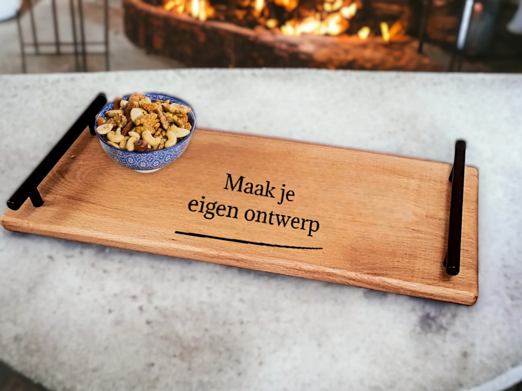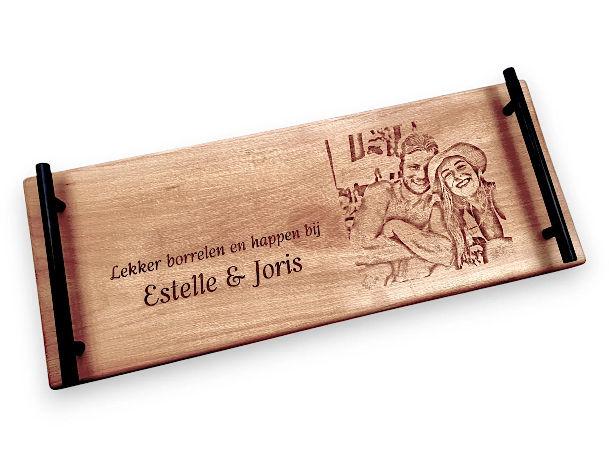 Personaliseer je borrelplank met een uniek ontwerp! Onze ontwerptool maakt het eenvoudig om een eigen tekst, afbeelding, logo, tekening of zelfs een foto te laten graveren. Wil je het nog makkelijker maak dan gebruik van onze mooie sjablonen/ vooraf gemaakte ontwerpen. Of je nu een borrelplank met foto wilt maken, een speciaal logo op de plank wilt laten zetten, of een tekening wil vereeuwigen, jouw ontwerp wordt met zorg gegraveerd. Voeg een foto van je huisdier, je familie, je voertuig, het bruidspaar of een geliefde plek toe voor een echt uniek cadeau.