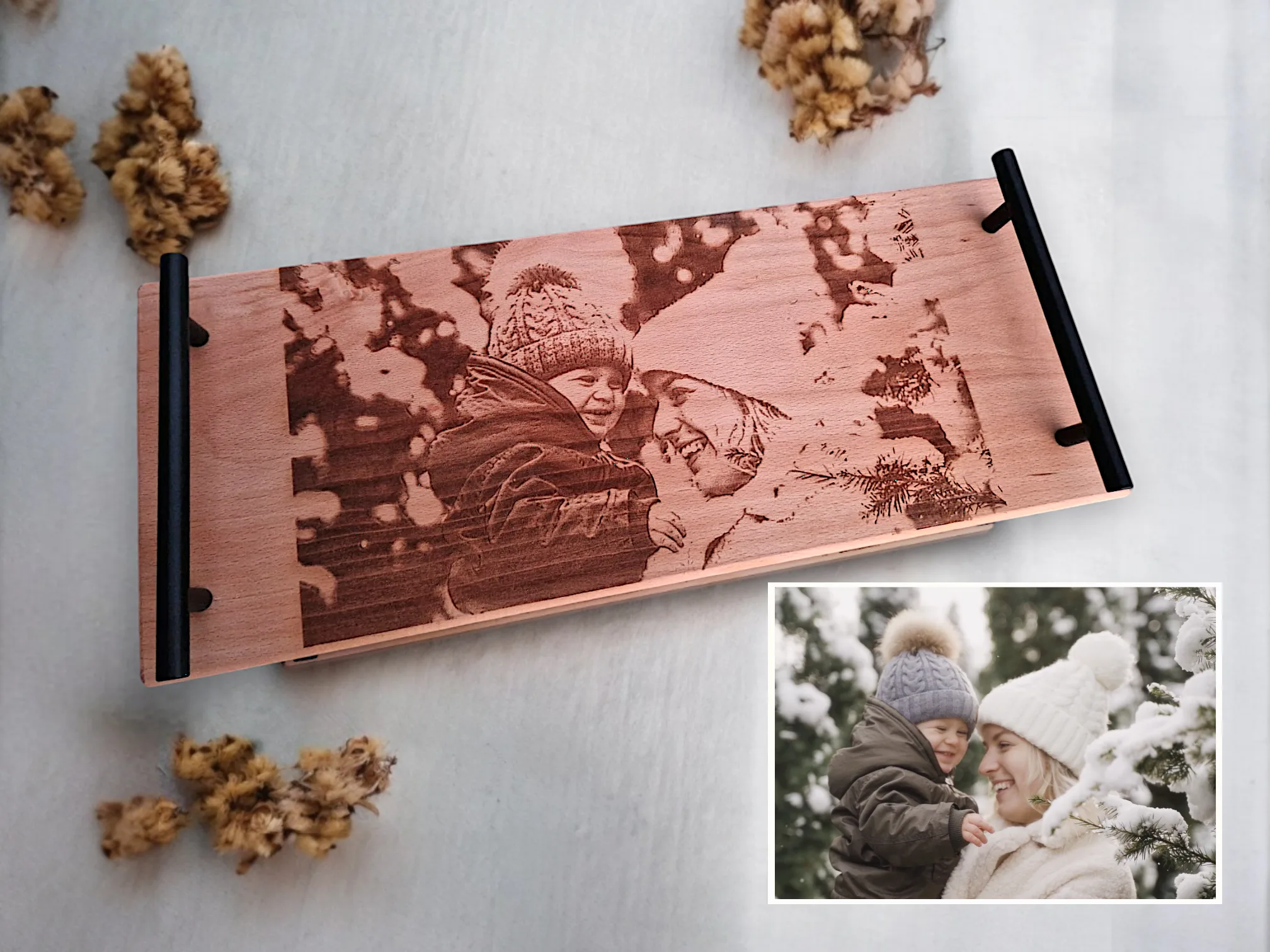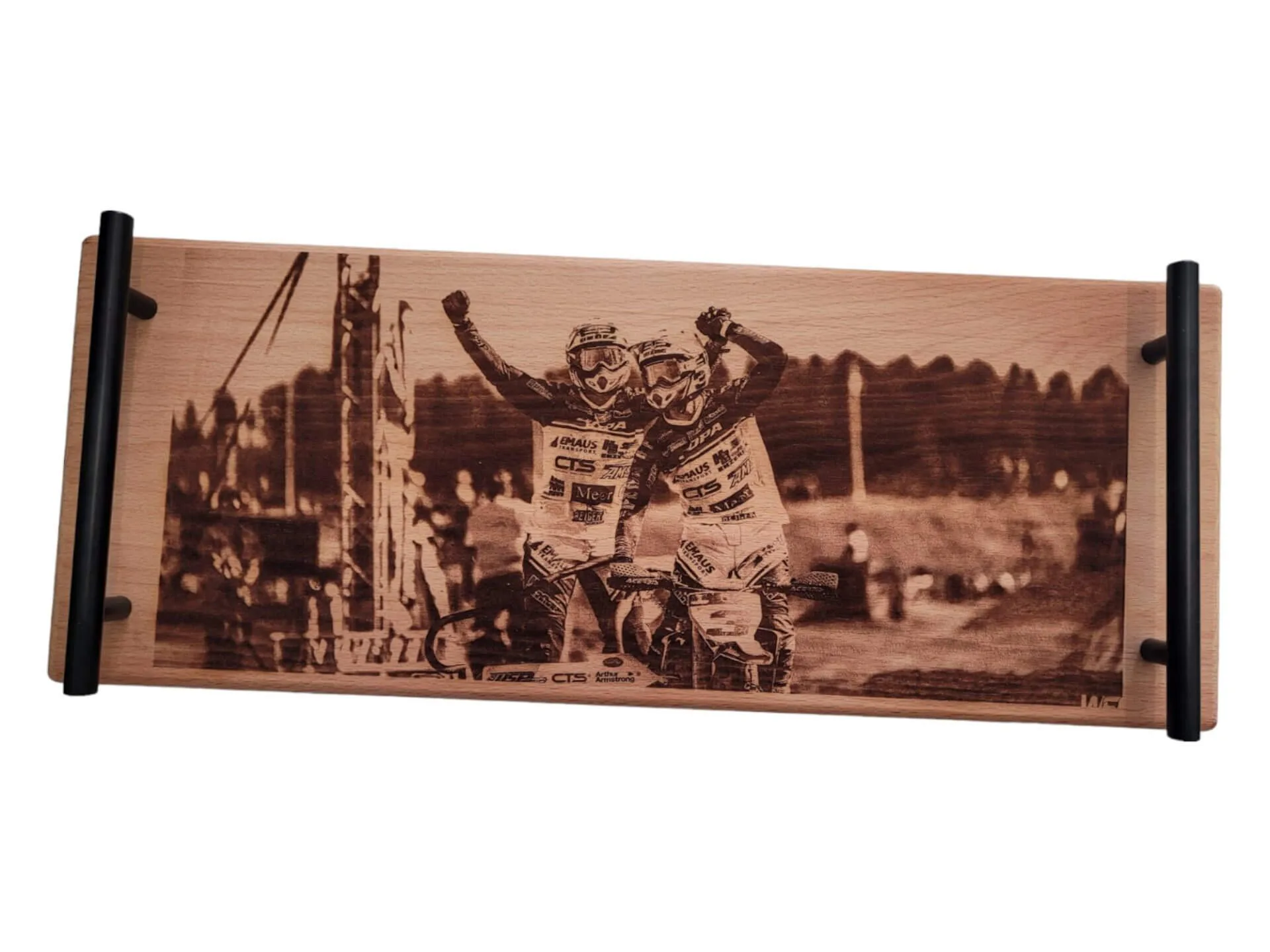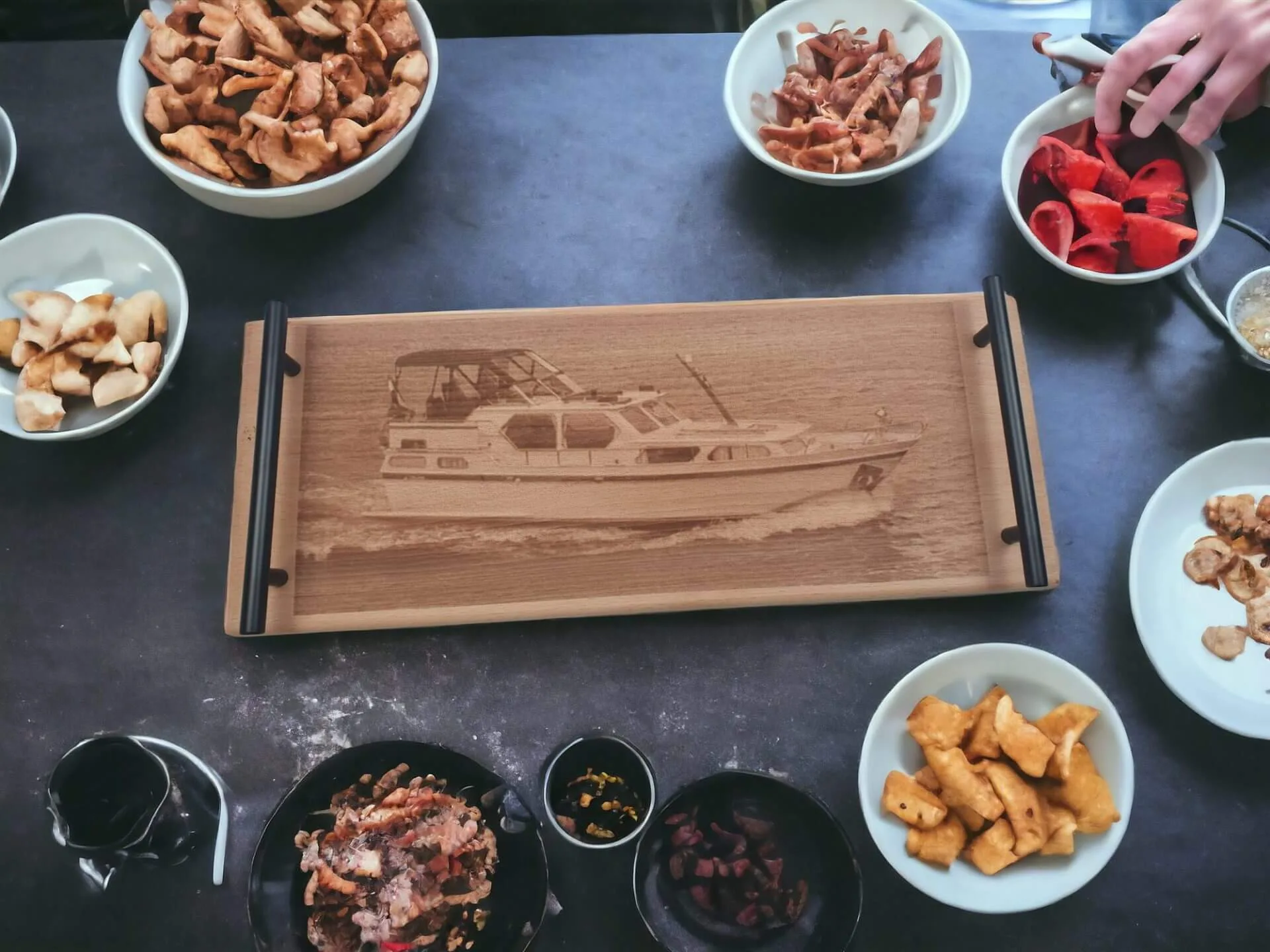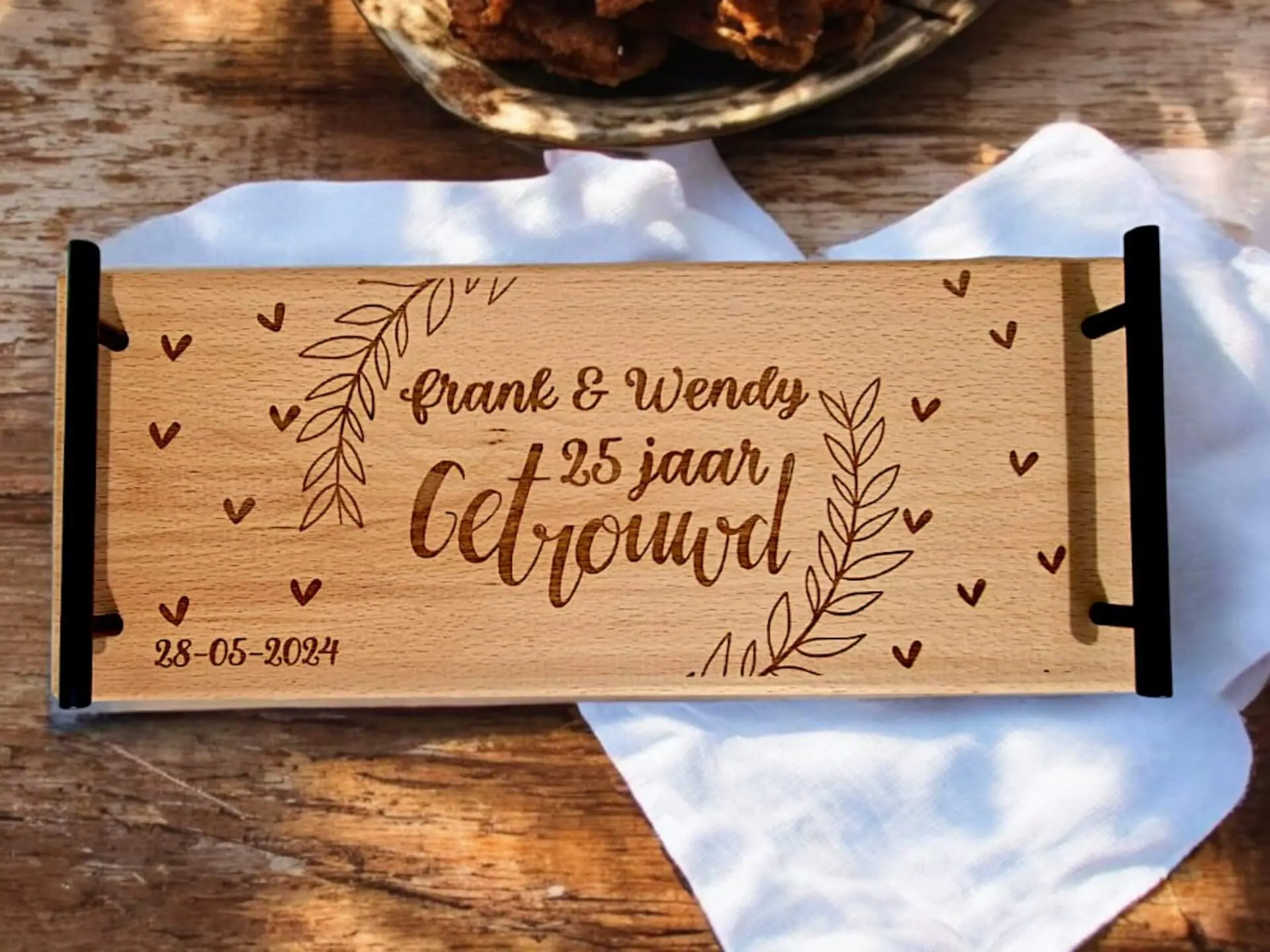 Personaliseer je borrelplank met een uniek ontwerp! Onze ontwerptool maakt het eenvoudig om een eigen tekst, afbeelding, logo, tekening of zelfs een foto te laten graveren. Wil je het nog makkelijker maak dan gebruik van onze mooie sjablonen/ vooraf gemaakte ontwerpen. Of je nu een borrelplank met foto wilt maken, een speciaal logo op de plank wilt laten zetten, of een tekening wil vereeuwigen, jouw ontwerp wordt met zorg gegraveerd. Voeg een foto van je huisdier, je familie, je voertuig, het bruidspaar of een geliefde plek toe voor een echt uniek cadeau.