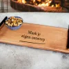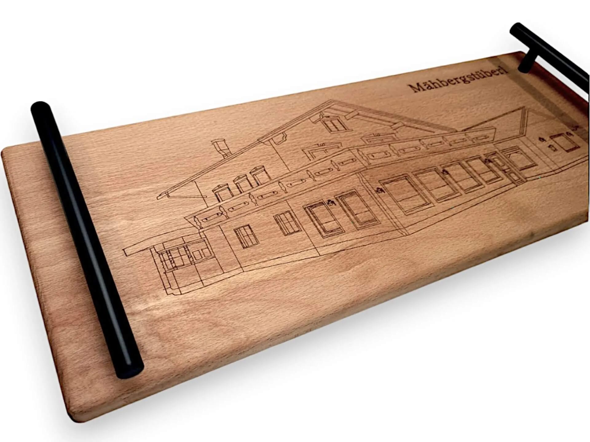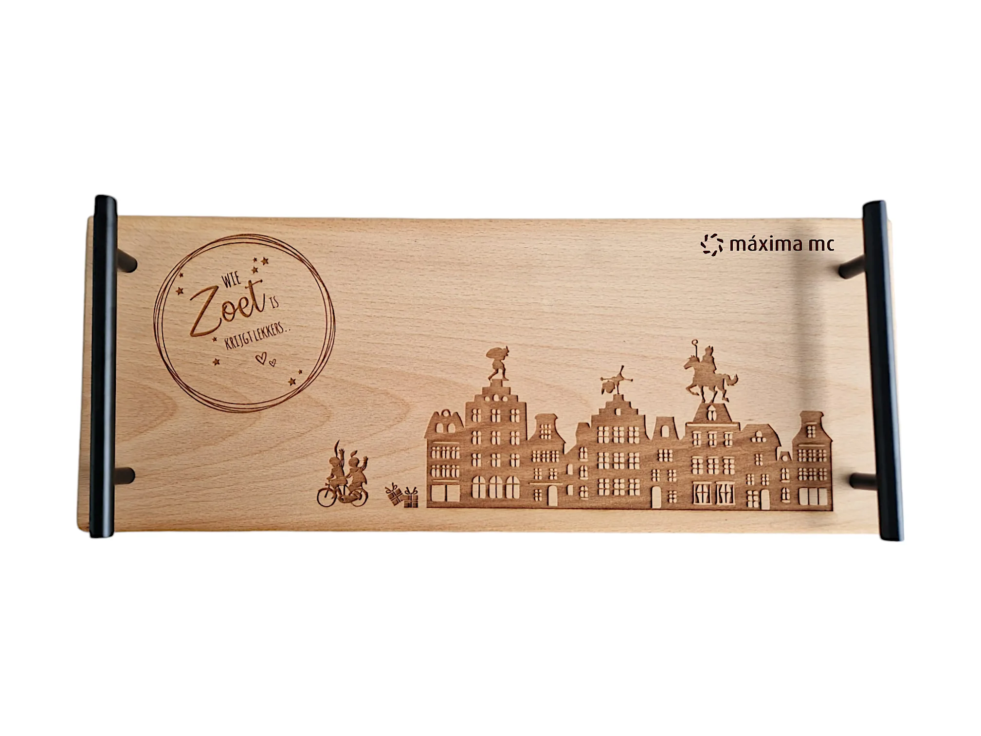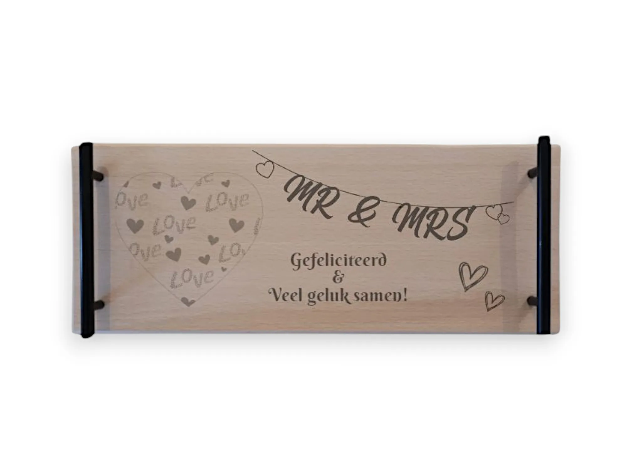 Deze handgemaakte beukenhouten borrelplank met stevige, zwarte stalen handvaten is ideaal voor wie zoekt naar een bijzonder, gepersonaliseerd cadeau. Perfect voor een housewarming, bruiloft of als origineel geschenk voor een collega! Met een royaal formaat van 50×20 cm biedt deze plank meer dan genoeg ruimte voor heerlijke hapjes. Een unieke kwalitatief goede plank die wordt gemaakt in onze eigen zagerij.