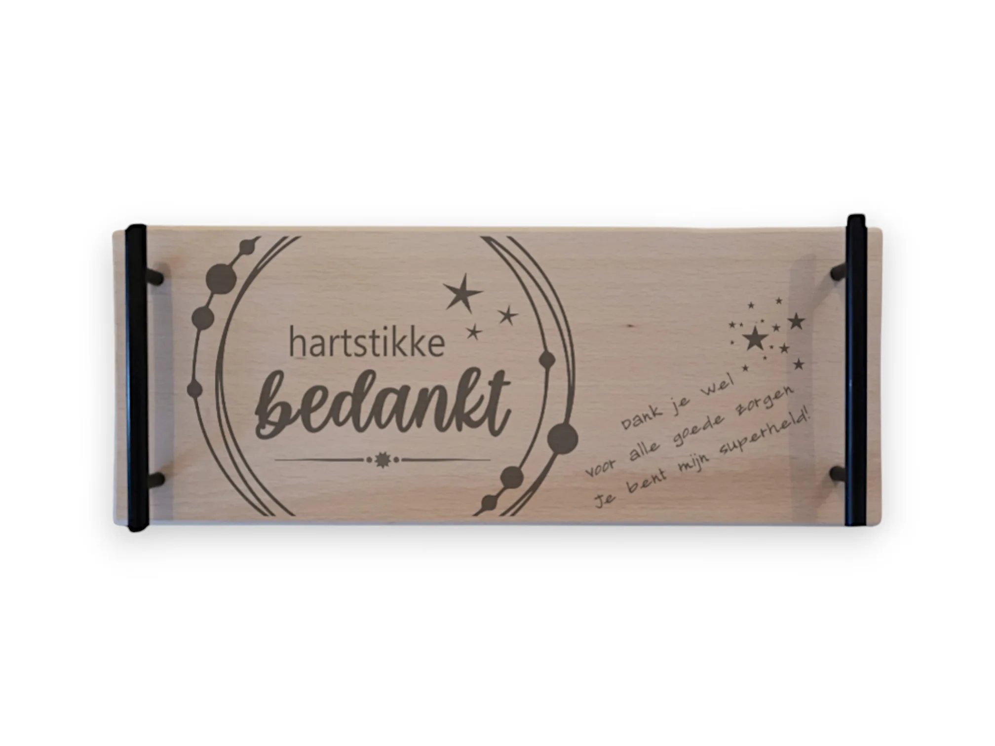 Wel zouden we willen adviseren even een houten kaartje toe te voegen, zodat de ontvanger weet van wie dit prachtige cadeau afkomstig is.