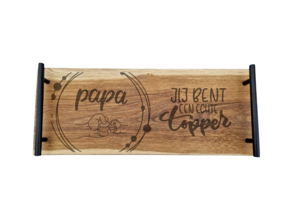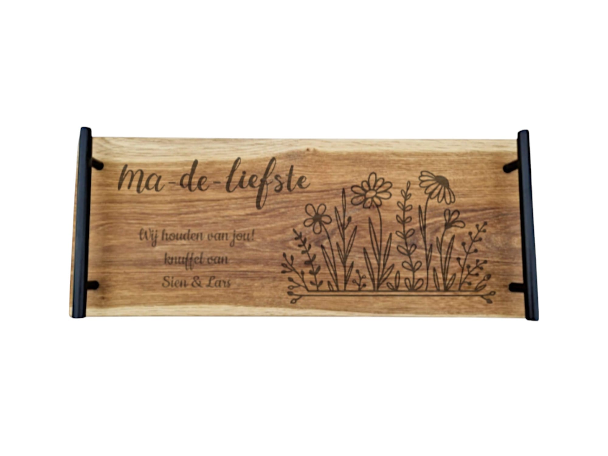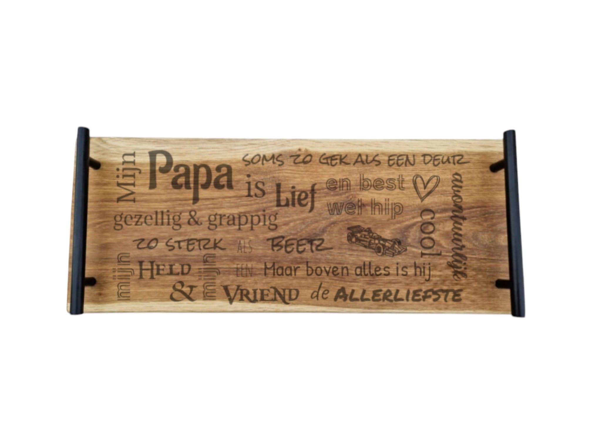 Gepersonaliseerde tapasplank met stalen handvaten | Eiken | Handgemaakt